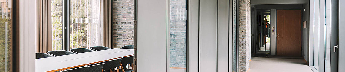 Im Verbindungstrakt im 1. Obergeschoss des Gebäudes befindet sich ein Beratungsraum für Veranstaltungen mit bis zu 15 Personen (ca. 40 m²).